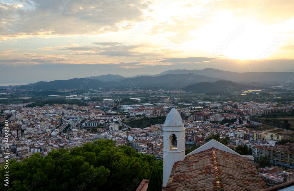 Mountain of castle San Juan. Costa Brava, Blanes, Spain. Chapel of John Baptist, at sunset.