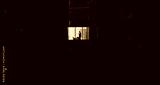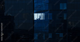 Aerial Shot: From Outside into Office Building with Businessman Using Mobile Phone and Standing by the Office Window. Beautiful Shot of The Financial Business District Skyscrapers.