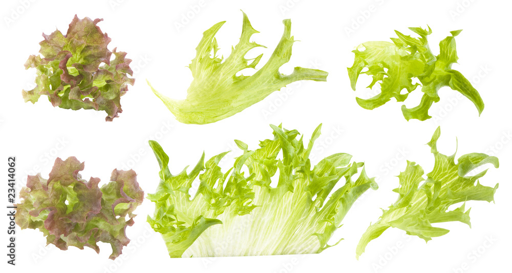 set of lettuce leaves isolated for food design