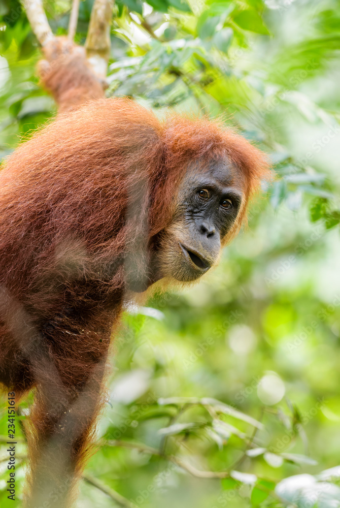 Sumatran Orang-utan - Pongo abelii, hominid primate from Sumatran forests, Indonesia.