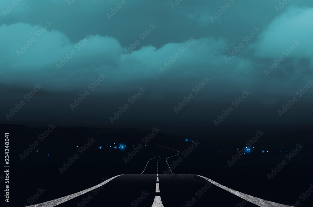 dark landscape with road and storm clouds