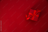 Merry Christmas and Happy Holidays greeting card, frame, banner. New Year. Noel. Silver, white and red Christmas ornaments and fir tree on red background top view. Winter holiday xmas theme. Flat lay.