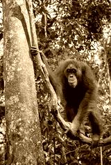 Sumatran Orang-utan - Pongo abelii, hominid primate from Sumatran forests, Indonesia.