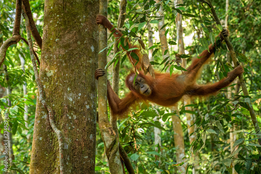 Sumatran Orang-utan - Pongo abelii, hominid primate from Sumatran forests, Indonesia.