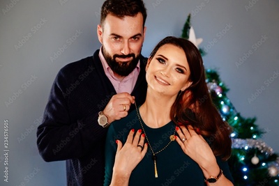 Man helps his wife to wear jewelry necklace