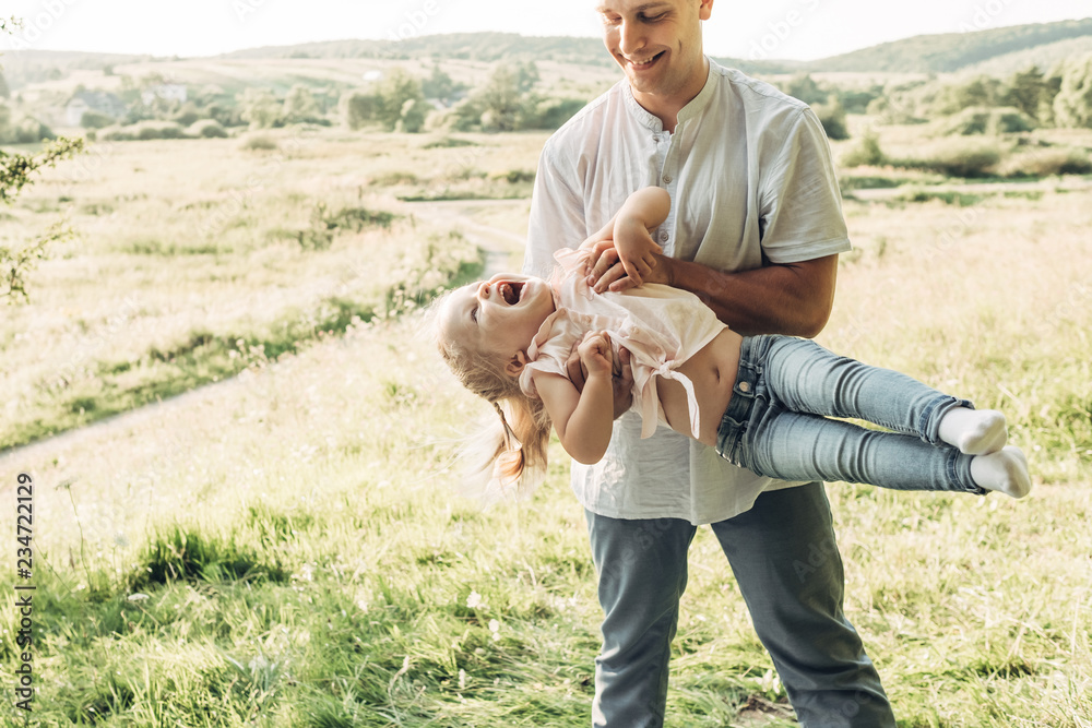 Happy Father and Daughter Having Fun, Enjoying Sunny Summer Day