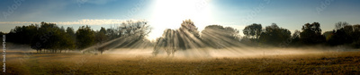 Sonnenaufgang an einem Herbstmorgen mit Bodennebel
