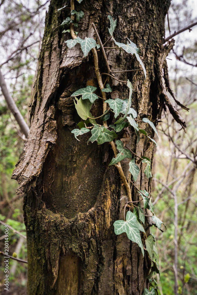 young tourist girl under beautiful sunset enjoying fantastic view of mountains covered with pine forest.