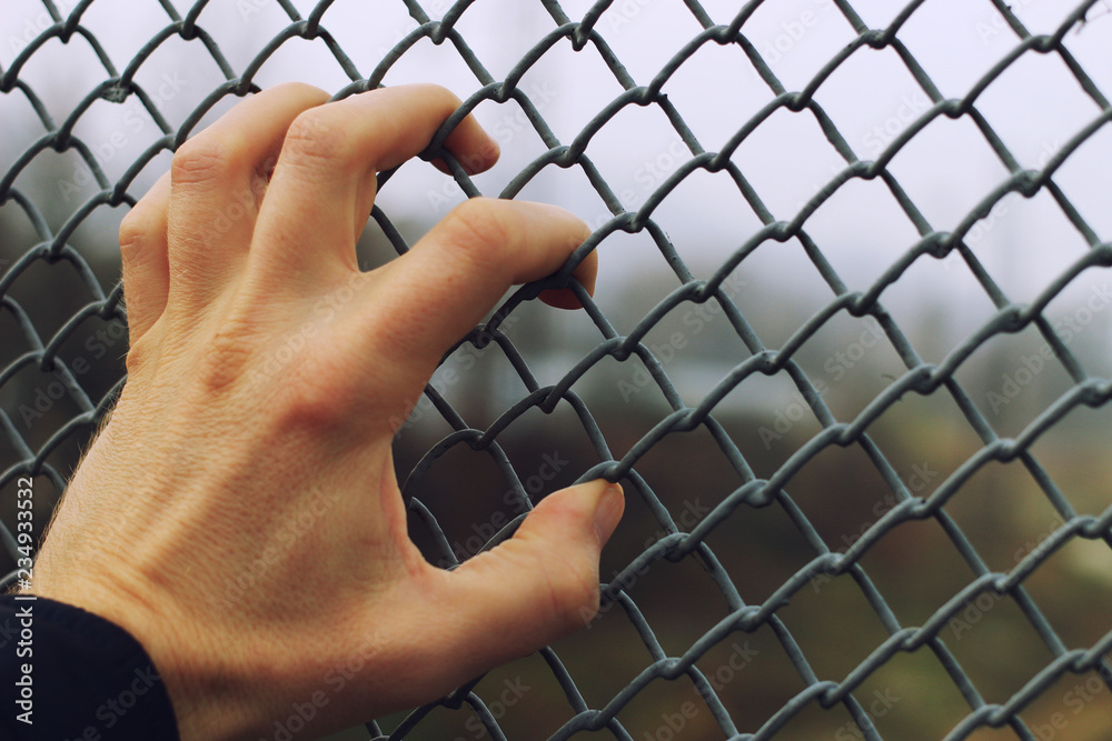 Hand and grid fences close-up