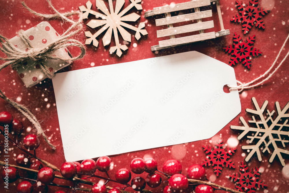 Flat Lay, Red Decoration, Copy Sapce For Advertisement