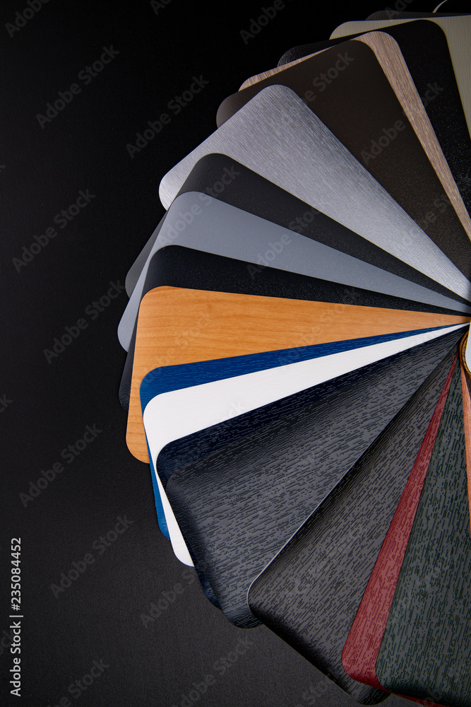 Próbnik kolorów. Wzornik kolorów wachlarzyk na ciemnym tle.y bożonarodzeniowe. Świąteczny prezent pięknie zapakowane w dekoracyjne papiery i kokardy.