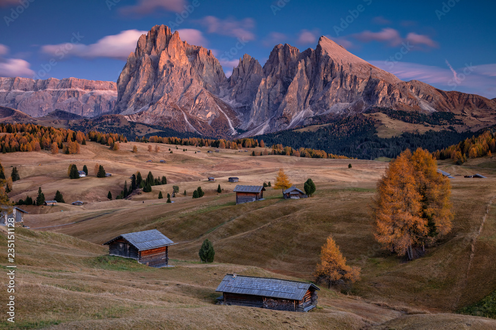 Dolomites. Landscape image of Seiser Alm a Dolomite plateau and the largest high-altitude Alpine meadow in Europe.