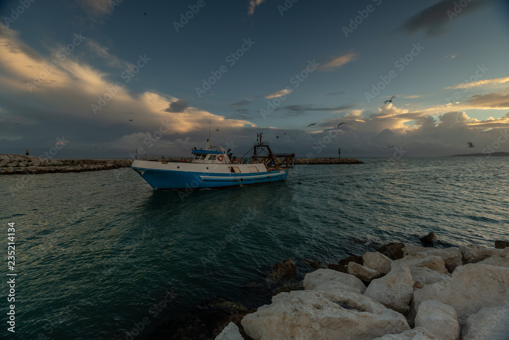 A fishing boat returning to port in Spain
