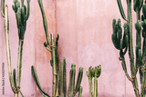 Plants on pink concept. Cactus on pink wall background. Minimal plant art