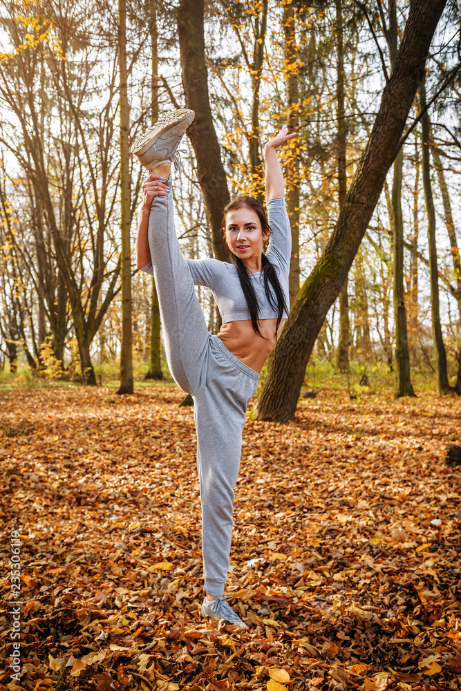 young gymnast girl in the park