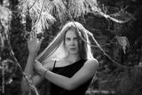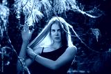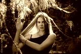 Beautiful girl with long hair poses with a cedar cone in the Siberian taiga
