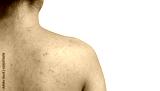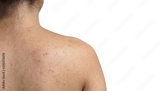 Young Asian woman have acne with red spots on the back isolated on white background, with clipping path.