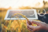 Smart farming Agricultural technology and organic agriculture Woman using the research tablet and studying the development of rice varieties in rice field