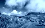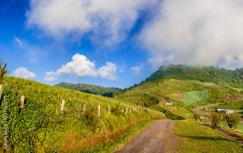 Wide mountain scenic sunny day green grass blue sky background, Phu Tub Berk Thailand