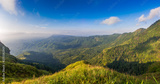 Wide mountain scenic sunny day green grass blue sky background, Phu Tub Berk Thailand