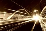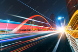 abstract image of blur motion of cars on the city road at night,Modern urban architecture in tianjin, China