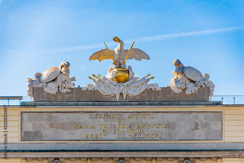 Die Spitze der Gloriette auf dem Hügel des Schlossparks von Schloss Schönrunn in Wien, der Hauptstadt Österreichs