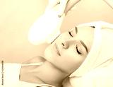 woman receiving procedure, skin rejuvenation at beauty salon. Elos procedure removes brown spots and narrows pores , smoothens fine wrinkles, slows down the age-related changes in skin