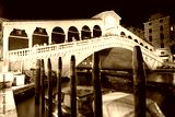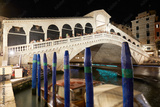 Rialto Bridge and Grand Canal with people and tourists at night in Venice, Italy