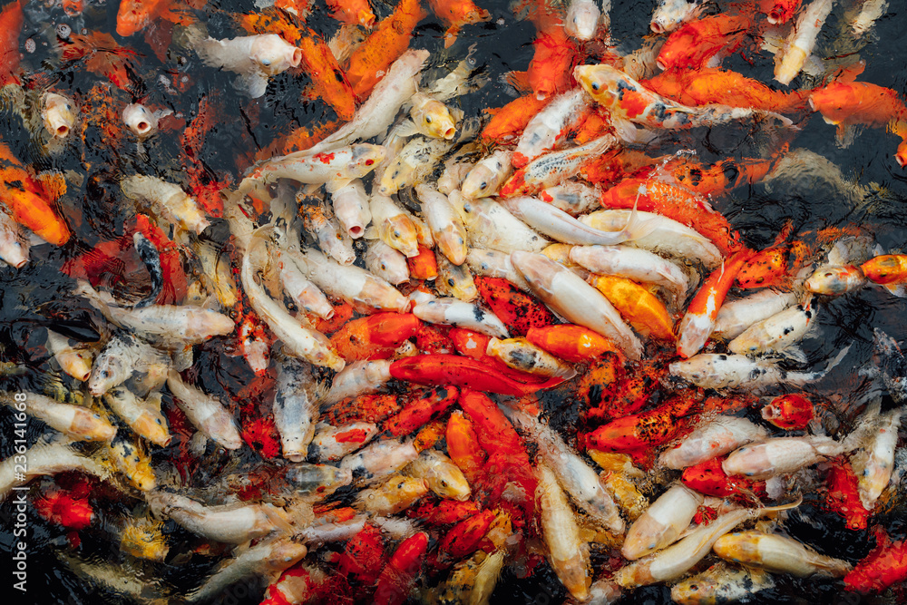 koi carp fish, top view