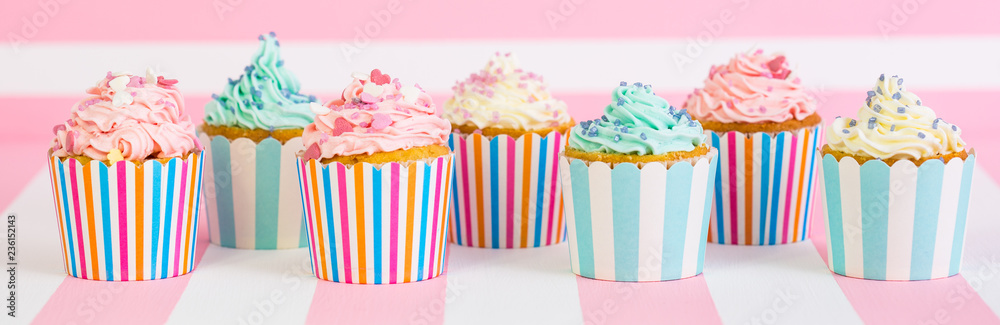 Cupcakes with pink, white and blue icing