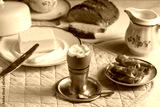 Egg for breakfast. Silver Egg, Bread, Butter and Bacon - Traditional Breakfast