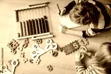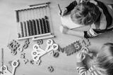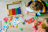 little boy and girl learn to write and calculate numbers