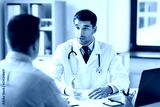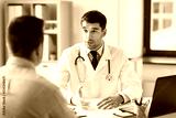 medicine, healthcare and people concept - doctor talking to male patient at medical office in hospital