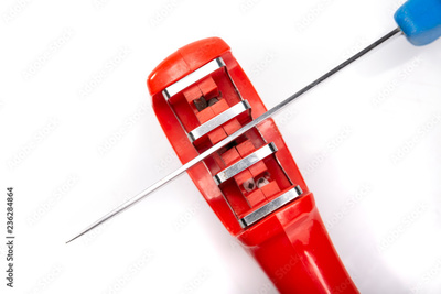 Ostrzałka do ostrzy. Ostrzałka do noży na białym tle