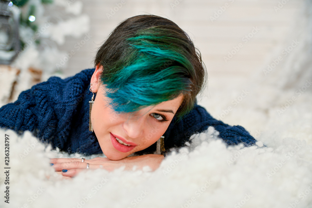 Christmas photoshoot of the beautiful young girl