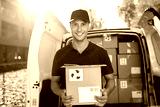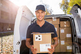 Delivery man standing in front of his van