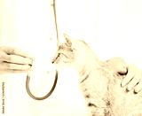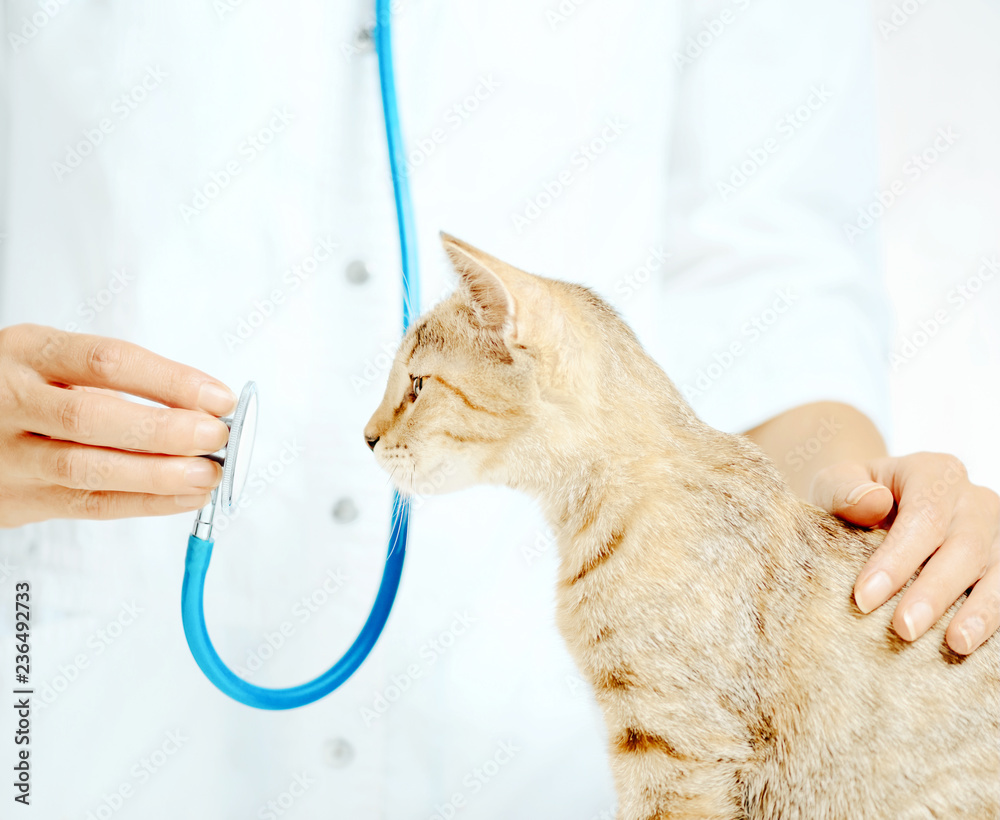 Curious cat looking at stethoscope on a visit to vet.