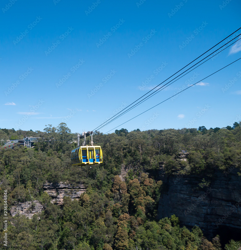 オーストラリア、ブルーマウンテンの渓谷と頂上を往復するロープウェイ(スカイウェ)