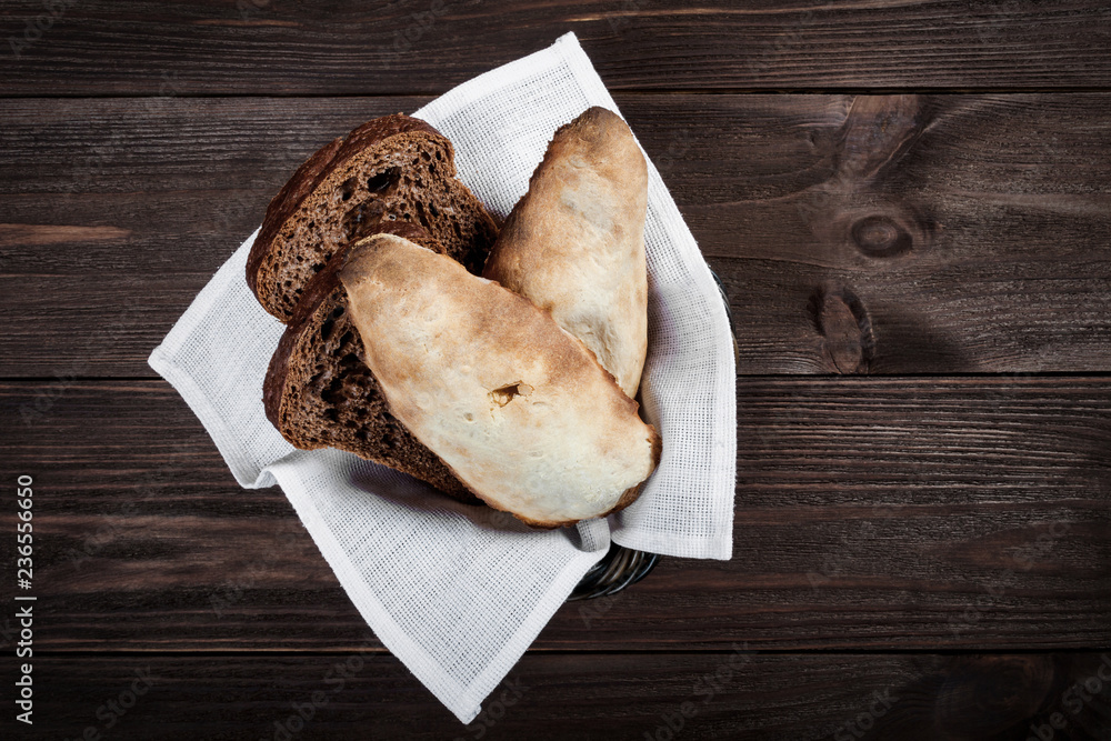 Georgian lavash, fresh pita bread, wheat flatbread in basket on wooden background. Caucasian kitchen. Homemade baking