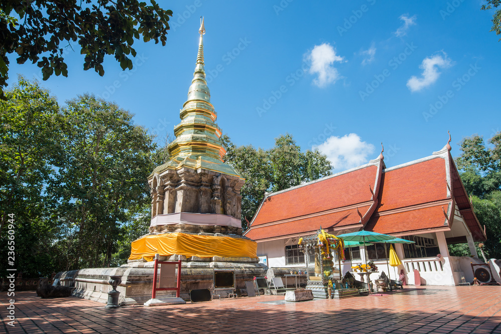 View of Wat Phra That Chom Kitti an ancient pagoda in Chiang Saen district of Chiang Rai province of Thailand.