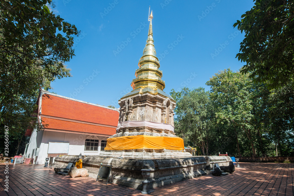 View of Wat Phra That Chom Kitti an ancient pagoda in Chiang Saen district of Chiang Rai province of Thailand.