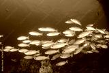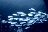 Fish school on coral reef underwater