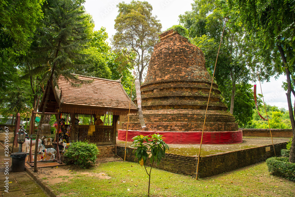 Ku Ma the old brick stupa in Lamphun province of Thailand. It is a very popular shrine marks the burial site of Queen Chama Thewi’s war horse.