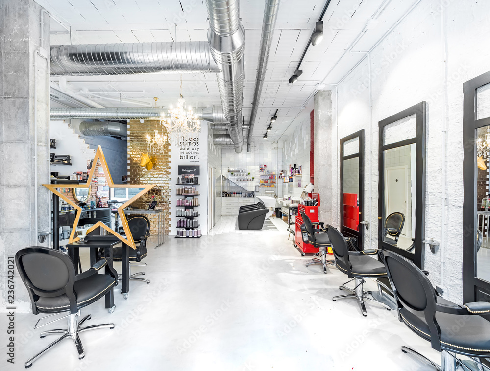 Chairs in a retro beauty salon. Hair salon and make up store, barber shop and manicure interior business