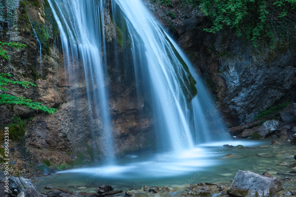 Beautiful waterfall Jur-Jur in the Crimea in the evening.