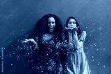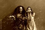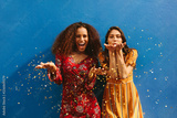 Female friends blowing off magic glitter