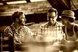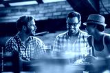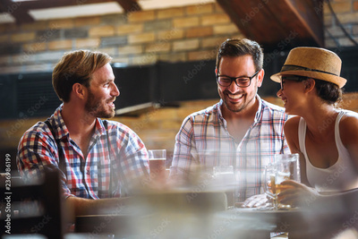 Happy friends having fun at bar - Young trendy people drinking beer and laughing together