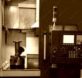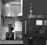 Workpiece strainer on high precision CNC Vertical Turning Center. Industrial metalwork manufacturing