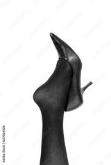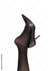 Woman leg in black pantyhose and black heel