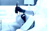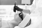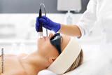 Laser frakcyjny, fotoodmładzanie skóry. Kobieta w salonie kosmetycznym podczas zabiegu z użyciem lasera.